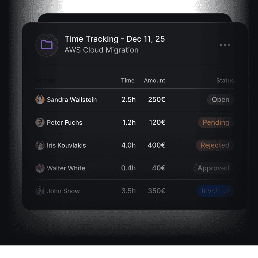 Make time tracking, submission, and approval effortless — so your data stays accurate and your team focused.