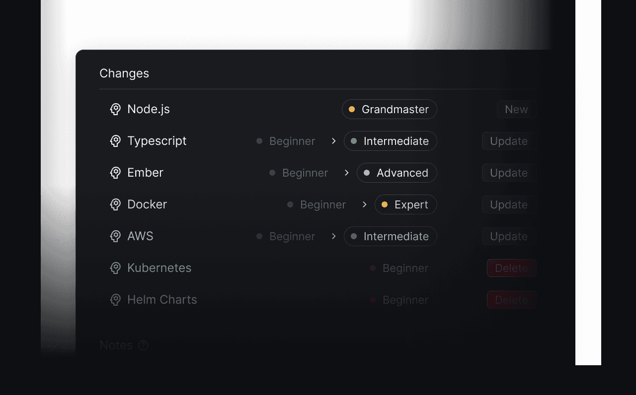 From individual skill profiles to organization-wide skills matrices. Aerion gives you the full picture of your team's capabilities.